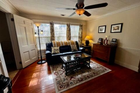 Spend a month or three in this charming Apalachicola cottage, featuring a queen bed, twin bed, and futon to comfortably accommodate up to four guests. Enjoy a full bath, an eat-in kitchen, cozy living and family rooms, and a three-season porch with a washer and dryer. Relax on the sun deck, take advantage of covered parking, and park a small boat on the trailer space provided. Cable TV and wireless internet are included. (Tax and cleaning fee apply.) Off-street parking, a great neighborhood, and all the comforts of home await, 2 blocks to public park!